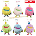 パピポの仲間のポム星人です。おなかのPOMって刺繍が一文字ずつ色が違っていて凝ってます。おなかを押すと音が鳴ります。ペポ~とかパ行の音(聞こえ方は人それぞれ)。 毛足が長くてフサフサしてます。ボールチェーンとストラップ付きだから持ち歩きできます。手の平サイズ。